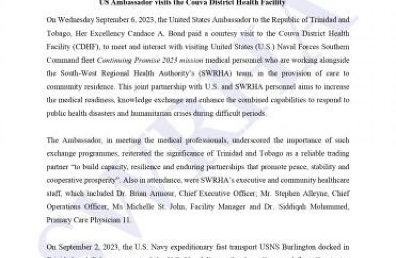Regional Administration Centre - PBX Info: (868) 225-HEAL (4325), Customer Service Hotline 87-SWRHA(877-9742)